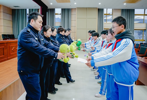 1月7日,在第六个中国人民警察即将到来之际,安康市紫阳县公安局联合共青团紫阳县委、紫阳中学初中部举办“金盾护苗显担当 警营开放迎朝阳”庆祝第六个中国人民警察节“警营开放日”活动,40余名中学生代表走进警营,开启一场别开生面的沉浸式公安体验之旅。