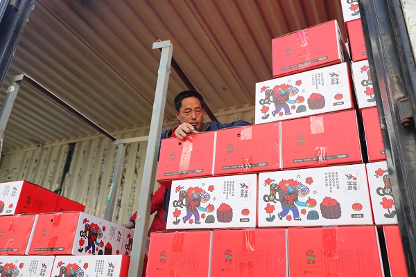 宜君诚信果业的厂区内同样一派繁忙,负责人姚明强正带着工人忙着装车。1月7日,最后一车发往江苏盐城大丰区的苹果顺利启运,这是苏陕协作的帮扶成果。大丰的订单刚收尾,广东东莞的商超订单就无缝衔接,借着错峰上市的优势,一箱箱色泽鲜亮的宜君苹果正源源不断地运往南方市场。