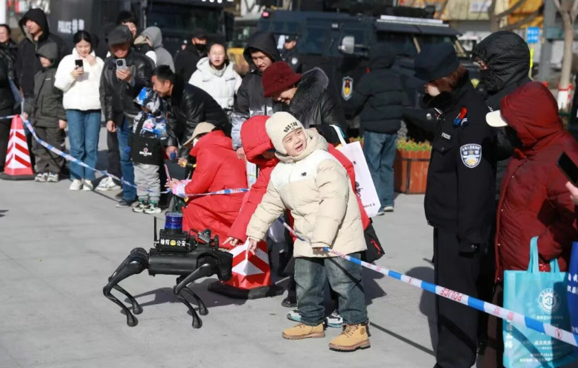 装备展示区陈列了单警装备、应急处突、刑事技术及特种车辆四大类装备。民警现场讲解了防暴盔甲服、防弹装备、破拆工具组等专业器材的功能与应用场景。其中,新配发的机器狗、无人救援艇、无人机反制设备及便携式痕量毒品检测仪等高科技装备,生动体现了智慧警务建设的最新成果。