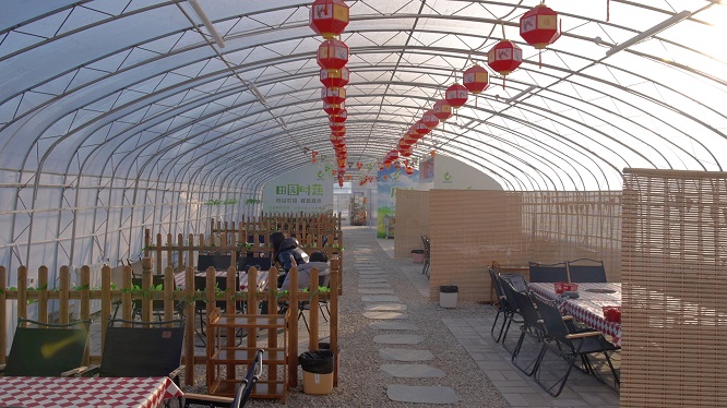 在推进乡村全面振兴和文旅产业融合发展的背景下,新府山农业产业园立足资源优势,积极探索“农业+文旅”融合发展的新路径,依托冬季闲置双膜拱棚资源,开展“鲜采蔬菜+冷鲜羊肉涮煮”体验,设置特色农产品展示销售区,集中推广自产果蔬及加工品。棚外闲置空地则建成小型公益性滑冰场,形成了集生态采摘、美食体验、亲子娱乐于一体的综合性休闲目的地。