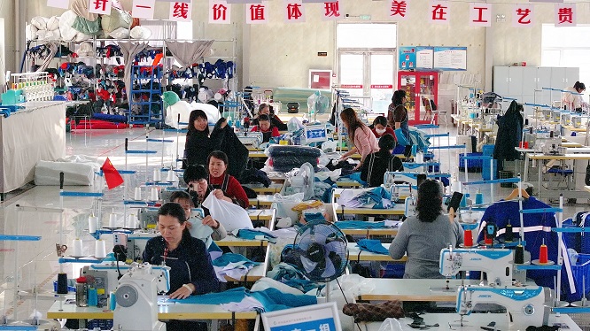 为破解搬迁户就近就业难题,府谷县扶贫服装厂于2020年正式搬迁至新府山,成为县农投公司全资子公司。工厂直接建立在移民安置区旁,政府为移民搬迁户量身定制“就业一公里”服务圈。目前,全厂现有员工60人,其中易地移民搬迁员工21人,主要承接周边服装订单,涵盖工装、校服、休闲装等品类,年产4万余套,年产值700余万元,员工年人均收入达3万元,切实实现搬迁群众“搬得出、稳得住”。“下一步,我们计划升级生产设备,提高生产效率,加强员工技能培训,提高生产效率,保证产品质量,加大销售力度,争取吸纳更多订单。”新府山扶贫服装厂厂长王耀说。
