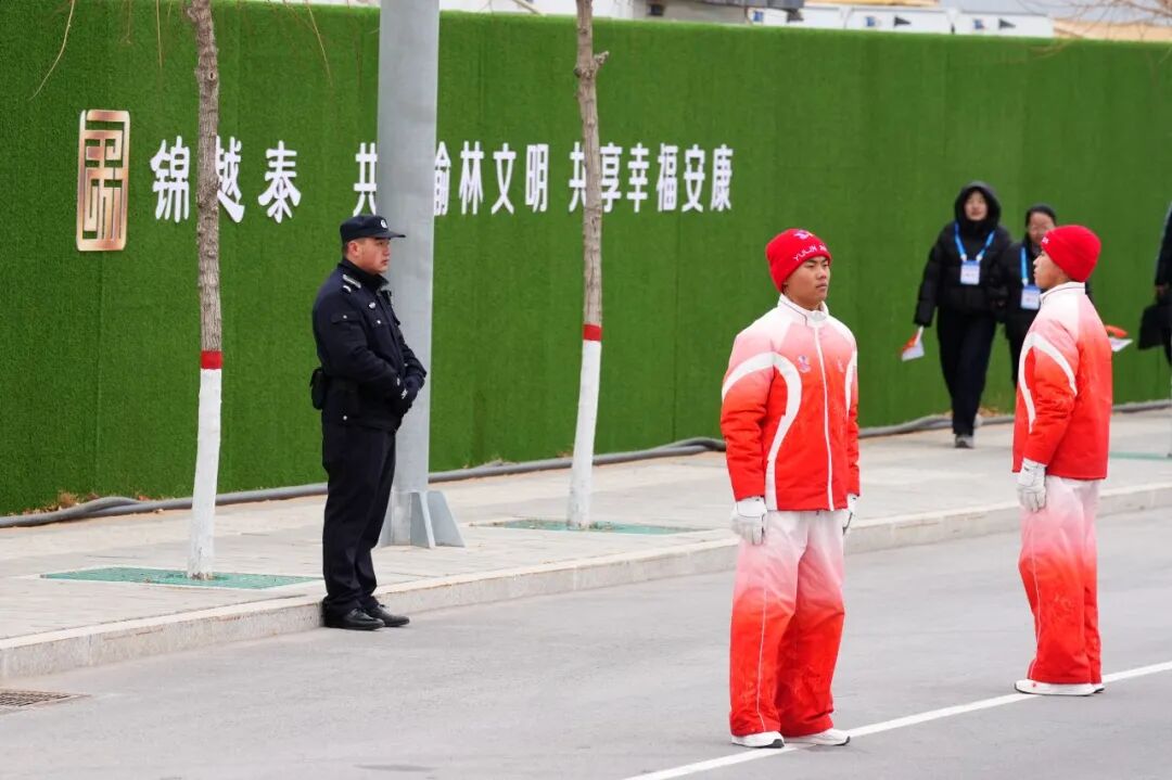 为保障活动万无一失,榆林市公安局高新分局坚持“超前谋划、精准施策”,提前制定详实周全的安保工作方案与应急处置预案,成立由分局主要领导担任总指挥的安保工作领导小组,先后召开多次专题会议研究部署,动态优化工作流程。通过对传递路线开展多轮实地踏勘,科学布置执勤点位,明确任务分工,压实岗位责任,累计投入警力200余名、保安160名,形成“点、线、面”立体防控网络,切实做到部署无盲区、责任不断档、衔接零缝隙。