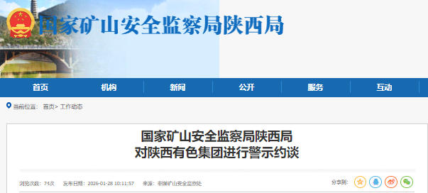 1月27日,国家矿山安全监察局陕西局对陕西有色集团及所属非煤矿山企业进行安全生产工作警示约谈。会议深入贯彻落实安全生产相关要求,深刻汲取近期事故教训,靶向倒逼企业严格履行安全生产主体责任,精准防范化解非煤矿山重大安全风险。