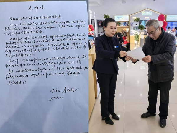 一纸亲笔信,浓浓服务情。近日,西安移动未央凤城四路营业厅收到一封来自独居老人的亲笔感谢信。信中,老人真挚讲述了自己在营业厅办理业务时的温暖经历。