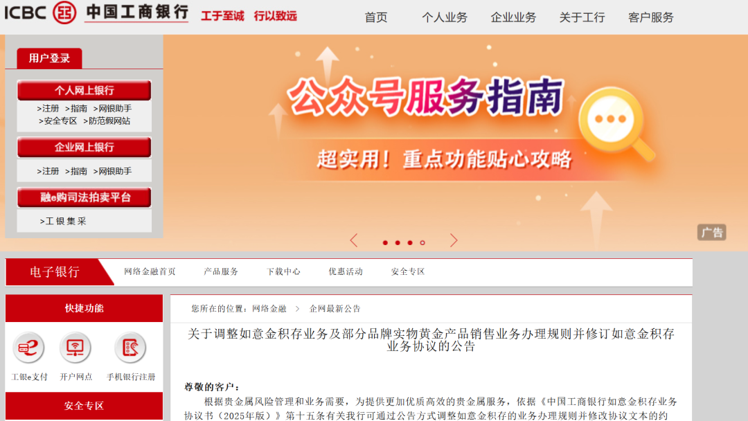 近日,中国工商银行、中国建设银行相继发布公告,对个人黄金积存业务的相关规则进行调整。