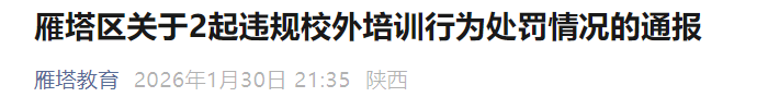 近日,西安雁塔区、经开区、浐灞国际港、曲江新区通报10起违规校外培训行为。
