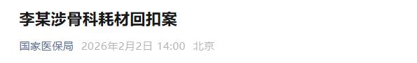 2月2日,国家医保局微信公众号发布《李某涉骨科耗材回扣案》,全文如下: