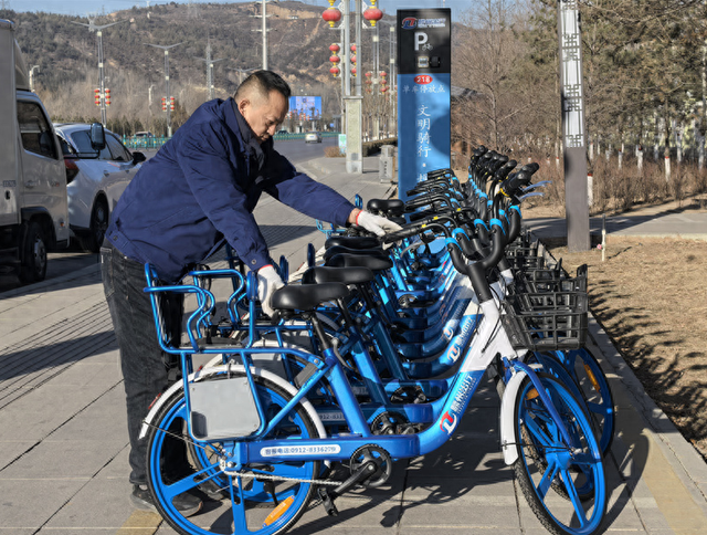 此次新投放的亲子公共单车专为家庭出行设计,配备了结构坚固的儿童专属座椅及卡扣式安全带,兼具舒适性与安全性,为亲子出游、短途通勤等场景提供了便捷选择。在神木职业技术学院门口,工作人员正有序地将亲子公共单车搬运至单车站点,并对刹车、车铃等部件进行调试,确保每一辆单车都能以最佳状态投入使用。