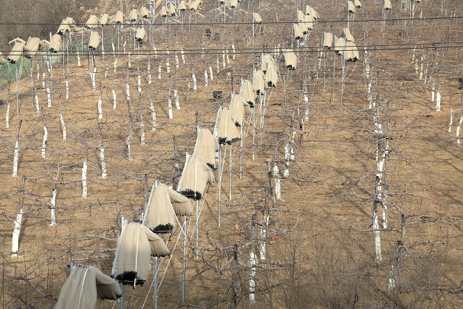 针对山地种植自然灾害频发痛点,贺家湾村还创新构建“432”地空一体防灾减灾体系,以科技赋能守牢产业根基。“四法”防霜冻,配置防冻坑、熏烟桶1250个,储备防冻液480份,配套远程点火设备、防霜机20套,构建地空立体防护屏障;“三措”抗旱情,推广地布与秸秆覆盖保墒技术,建设软体集雨窖,配套坑施肥水一体化措施,实现秋雨春用、旱涝保收;“双防”御冰雹,覆盖果园防雹网343亩,同步联动高炮空中作业,形成空中拦截+地面防护双重保险。