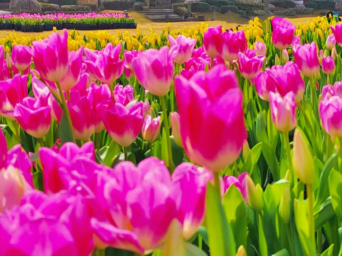 2026中国唐苑·新春鲜花节依托独具唐风雅韵的艺术园林空间,以近20万株郁金香反季节绽放,呈现出花海盛宴,形成了红黄紫粉交相辉映又错落有致的视觉奇观。活动期间,还精心策划花间巡游、迎宾舞蹈、对诗“飞花令”等多项沉浸式唐风演绎互动项目,为西安本地市民及外地游客提供了一场集赏花游园、文化体验、民俗消费于一体的文旅新春活动。