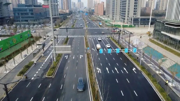 除了通行能力的提升,项目更聚焦智慧化升级与民生福祉改善。全线引入智慧交通系统,依托车路协同优化信号调控,提升精细化管控水平。更换节能LED路灯,照明覆盖率100%、亮度提升50%,补齐夜间照明短板。扩容给排水管网,破解排水难题、筑牢防汛防线,全方位提升群众出行体验。