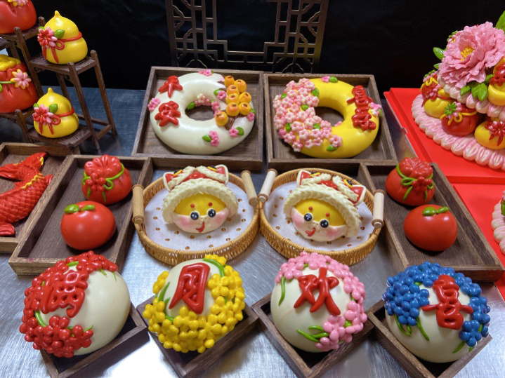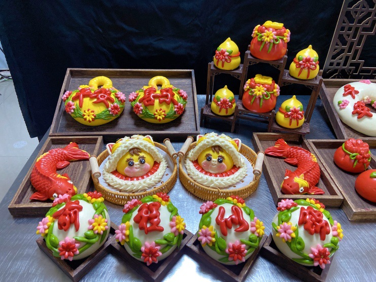 从宝宝满月、周岁、完灯的喜庆摆台、长辈祝寿的“寿桃”,到订婚结婚的传统礼馍,每一件作品都承载着独一无二的期许与祝福,“花馍是中国传统面点技艺,我觉得我们年轻人有责任把它传承好。能把这份美好的寓意分享给更多人。”唐玉洁说,这份工作带给她的成就感,是任何东西都无法替代的。