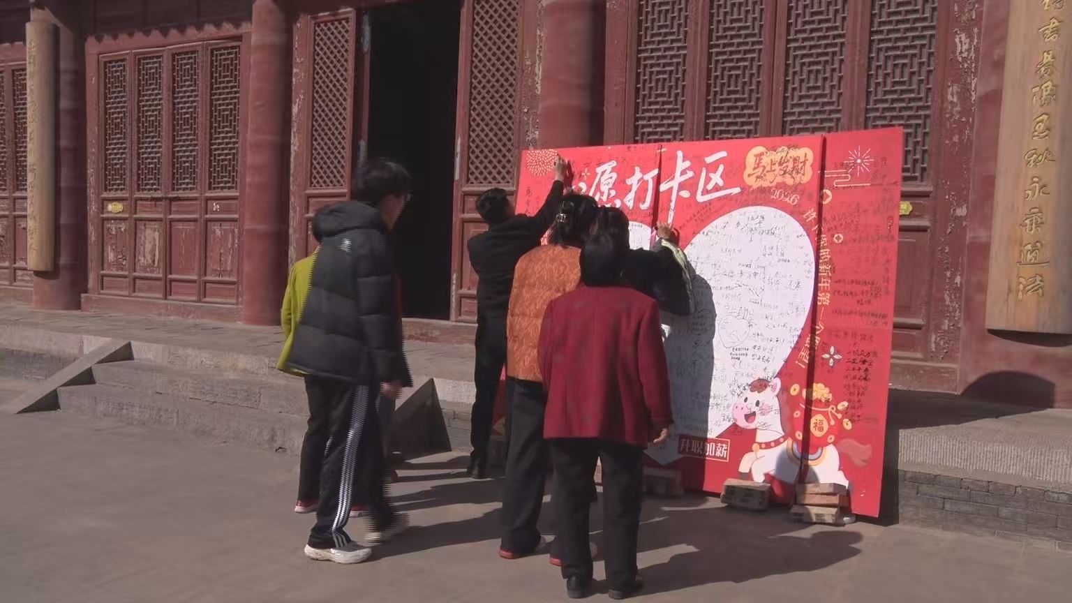 在“福马驾到”新春打卡点前,精心设计的主题打卡牌与文庙古建相映成趣,洋溢着马年新春的喜庆气息。“手拓吉祥印·福满马年春”非遗体验环节,工作人员精选多款蕴含吉祥寓意的纹样及福字拓印模板,讲解拓印的技巧,指导游客上手操作。不少家长带着孩子共同参与,完成新春拓印作品,在沉浸式体验中,感受传统技艺的独特魅力。在文庙大成殿前设置了心愿打卡区,游客们纷纷提笔写下新年愿望与美好祝福,一句句真挚话语承载着对新一年的期盼与向往。大家在参观游览、互动体验中传承非遗技艺,在温馨氛围中欢度新春佳节。