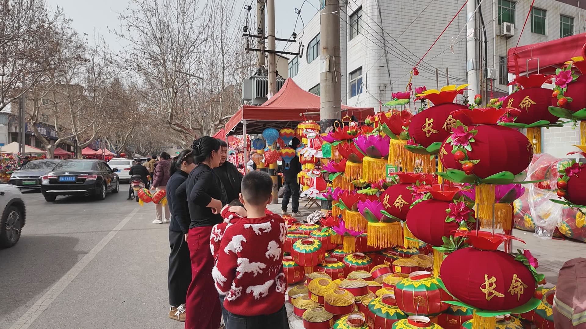 春节期间,药王路的灯笼市场热闹非凡。远远望去,整条街像一条红色的长廊,百余个摊位一个挨着一个,把新春的氛围感拉满。走近看,更是琳琅满目——红纱灯流苏摇曳,典雅大气;手工扎制的石榴灯、莲花灯惟妙惟肖;还有生肖灯、卡通灯,造型萌趣,惹得孩子们挪不动脚步。人群中,有牵着孙辈的老人,有抱着娃娃的年轻父母,还有三五成群的“送灯团”。他们在一排排灯笼前仔细端详,比做工、看寓意,一番挑选后,提着心仪的灯笼心满意足地离开。