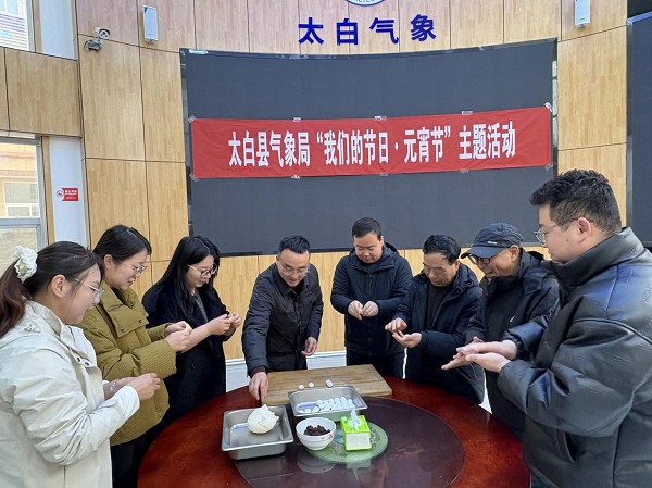 3月3日上午,宝鸡市太白县气象局在职工食堂组织开展2026年“我们的节日·元宵节”主题活动。全体干部职工欢聚一堂,通过亲手制作花灯、包汤圆等方式,共庆元宵佳节。