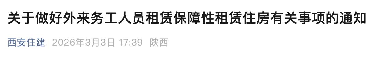 3月3日,西西新闻记者从西安市住房和城乡建设局获悉,在西安市工作的外来务工人员申请保障性租赁住房优惠活动项目,可享受价格折扣、先住后审、单位整租等政策。