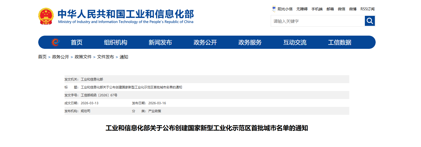 近日,工业和信息化部正式公布获批创建国家新型工业化示范区首批城市名单,西安市成功入选,成为西北地区唯一上榜城市。
