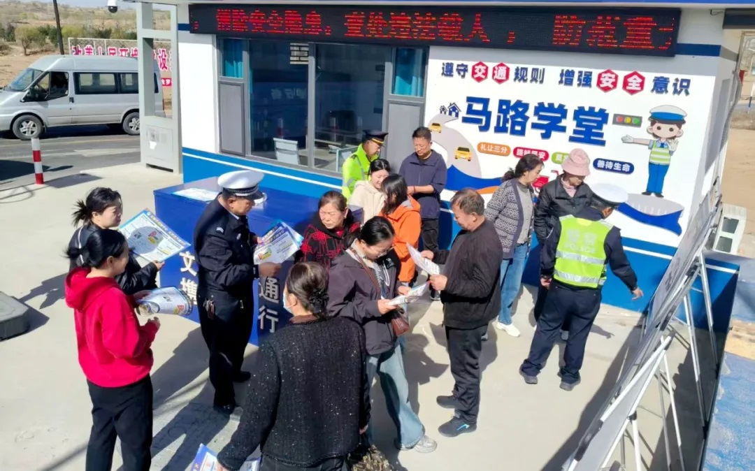 根据辖区榆靖公路人流车流密集的现状,大队芦草梁中队联合交通执法部门,借助“马路学堂”,通过发放宣传资料、展示事故案例展板、签订安全承诺书等形式,向违法驾驶人及过往群众科普交通违法危害,重点警示酒驾醉驾、农用车违法载人、骑乘摩托车不戴安全头盔等违法行为,引导群众树立文明出行意识。