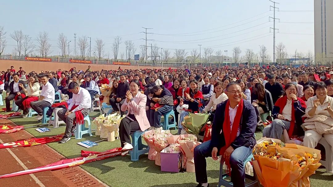 校党委书记陈涛携班子成员在成人门前为学生击鼓助威,送上声声祝福;家长们牵着孩子的手,一步步跨越成长的门槛。