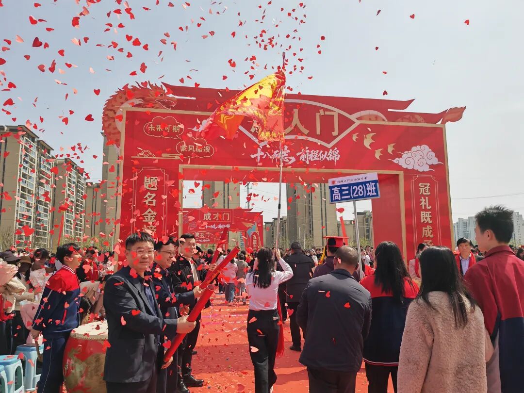 踏入成人门,告别年少稚气,褪去懵懂青涩,从此便是成年之人,懂责任,知担当,以独立之姿面对人生风雨;走过成才门,笃行求知之路,愿少年们始终保持热爱,勤学笃行,锤炼本领,成长为有理想、有力量的新时代青年;跨越成功门,心怀家国远方,愿大家坚守初心,勇毅前行,以青春之名,赴时代之约,活出属于自己的精彩。