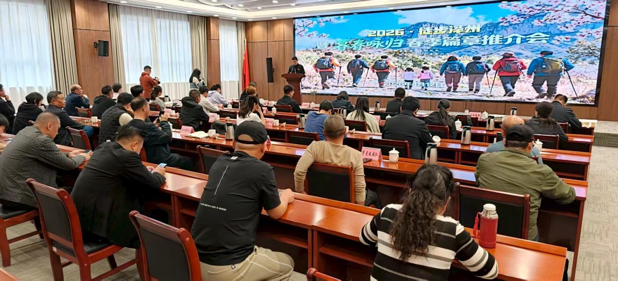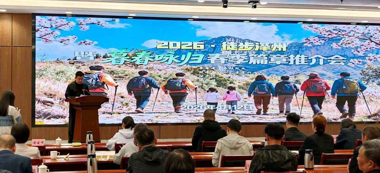 4月12日,2026徒步泽州暨暮春咏归春季篇章推荐会在山西省泽州县政府会议中心召开。活动旨在深入推进文旅融合与全民健身,全面推介泽州春日文旅资源,邀请广大市民与徒步爱好者共赴太行之约、同赏暮春盛景。