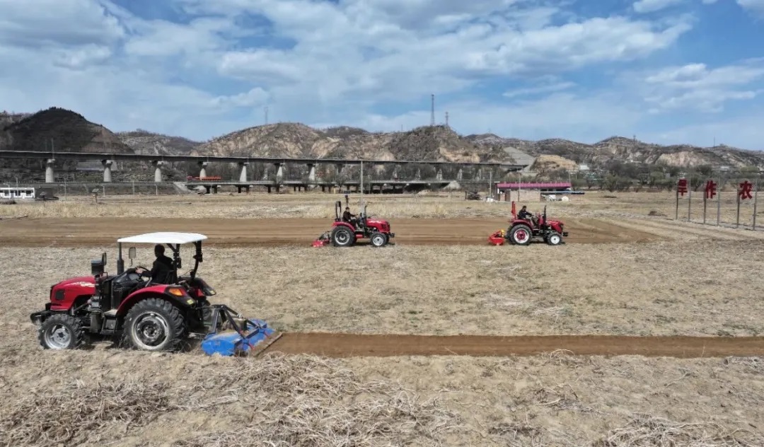 4月13日,在子洲县马蹄沟镇巡检司村的川地里,3台大型旋耕机往来穿梭、轰鸣不息,不到半天时间,几十亩土地便被翻整得松软平整。“以前春耕全靠人力,我家的二十几亩地得忙活十几天,现在旋耕机半天就搞定了,既保墒又提效。政府还有补贴,个人只需要花几百块钱就能搞定,真是省时又省力。”63岁的叶维成站在地头,算起了经济账和时间账。