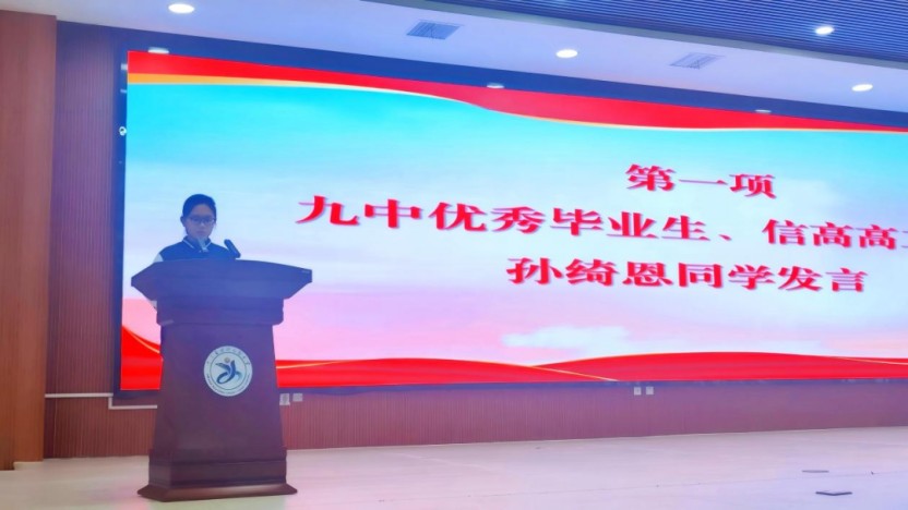 从九中到信高的路,她用亲身经历照亮。九中优秀毕业生、现信高高二四班孙绮恩同学分享学习经验。她回忆九中时光,介绍信高高效课堂、丰富社团与浓厚学风,并给出中考备考建议:制定清晰计划,落实知识点;整理错题本,查漏补缺;排除干扰,心无旁骛;保持平和心态,从容应考。她祝愿学弟学妹们六月中考旗开得胜,圆梦信高。