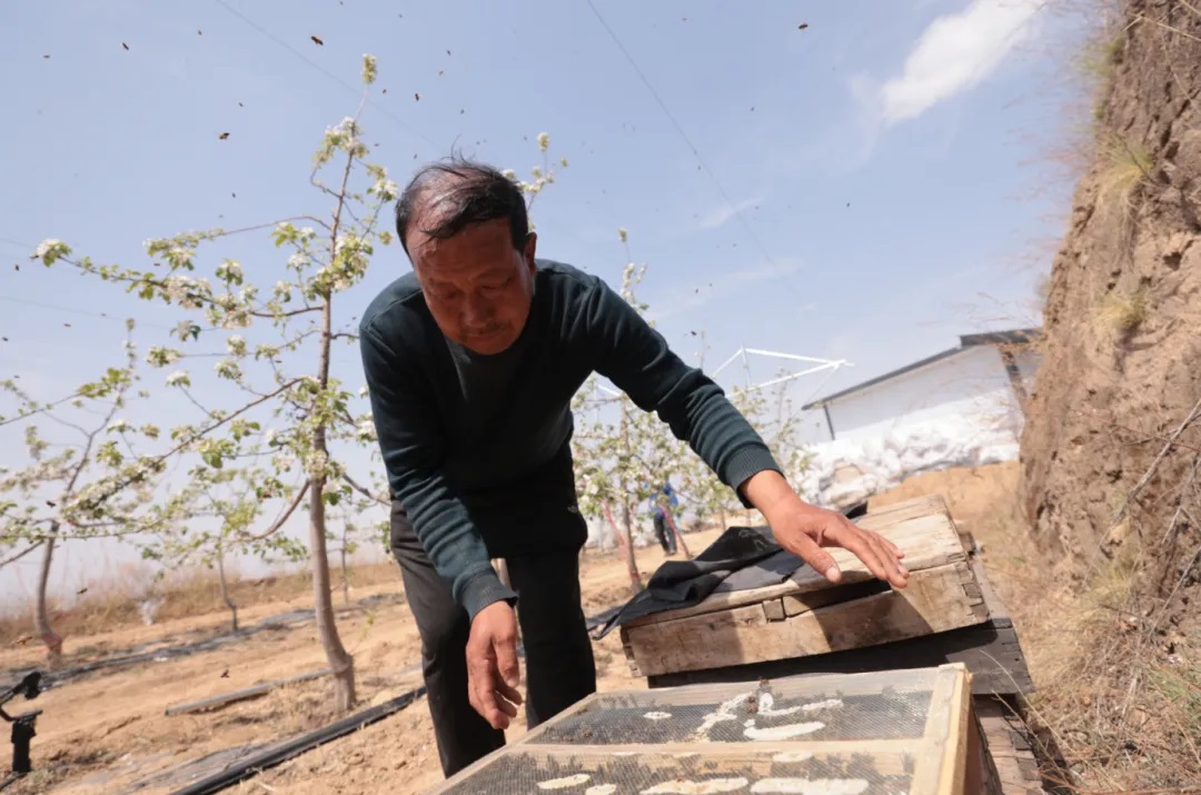 同样的春日管护热潮,正在子洲县的沟沟峁峁间全面铺开。在马岔镇杜家沟村山地苹果基地,负责人高东说道:“今年,我们租用了附近蜂农的20箱共计20余万只蜜蜂,自然授粉不仅均匀度高、生态效果好,还大幅降低了人工管护成本,这几天看下来,成效特别明显!”这种“果农+蜂农”的合作模式,既实现了果园绿色管护的目标,也为当地蜂农开辟了新的增收渠道,走出了一条产业互补、双向共赢的新路子。