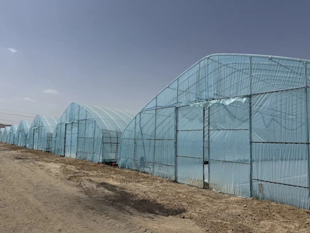 鱼河镇四娃圆梦家庭农场的温室大棚整齐排列