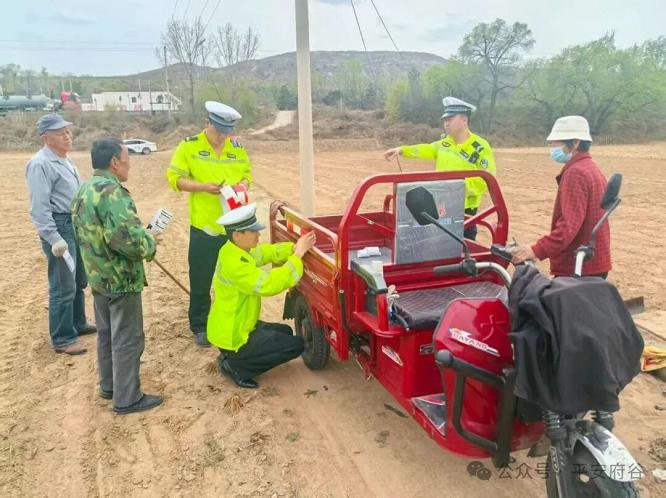 民辅警利用乡镇会议、乡村集市等场合,深入田间地头,结合农村典型事故案例,向群众重点讲解农用车违法载人、无证驾驶、酒后驾驶等行为的严重危害,强调骑行摩托车电动车佩戴安全头盔的重要性。通过发放资料、现场答疑,教育引导群众自觉遵守交通法规,摒弃交通陋习,确保春耕期间出行安全。