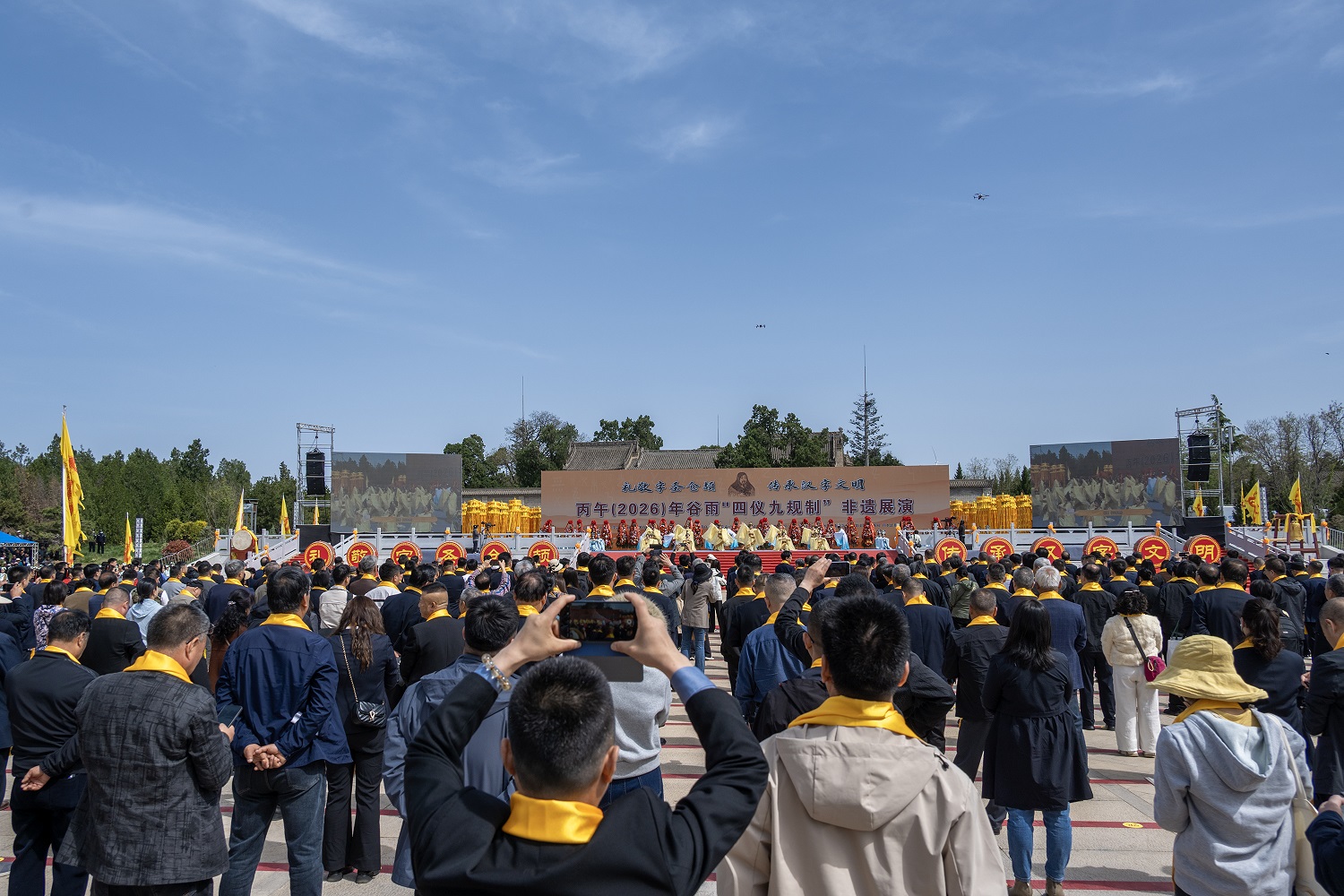 “礼敬字圣仓颉·传承汉字文明”。4月20日,丙午(2026)年谷雨“四仪九规制”非遗展演在文字始祖仓颉故里陕西省渭南市白水县举行。