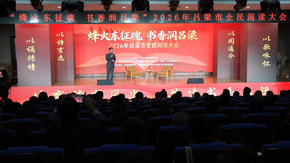 为深入贯彻落实《全民阅读促进条例》,推动全民阅读常态化长效化开展,持续厚植“书香吕梁”建设氛围,立足吕梁厚重红色文化底蕴,紧扣纪念红军东征90周年的重大主题,以阅读传承红色基因、以书香赓续革命精神,4月20日,山西举办“烽火东征魂 书香润吕梁”2026年吕梁市全民阅读大会。