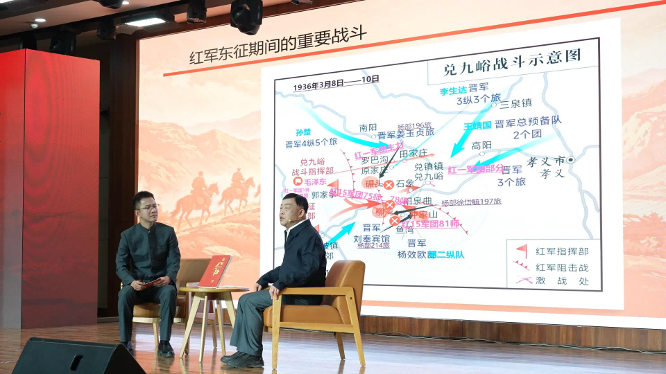 主持人对话特邀嘉宾党史专家王书平,围绕东征历史脉络展开深度对话,分享红军东征的战略部署与重大意义,引领观众在史实中感悟初心、汲取奋进力量。