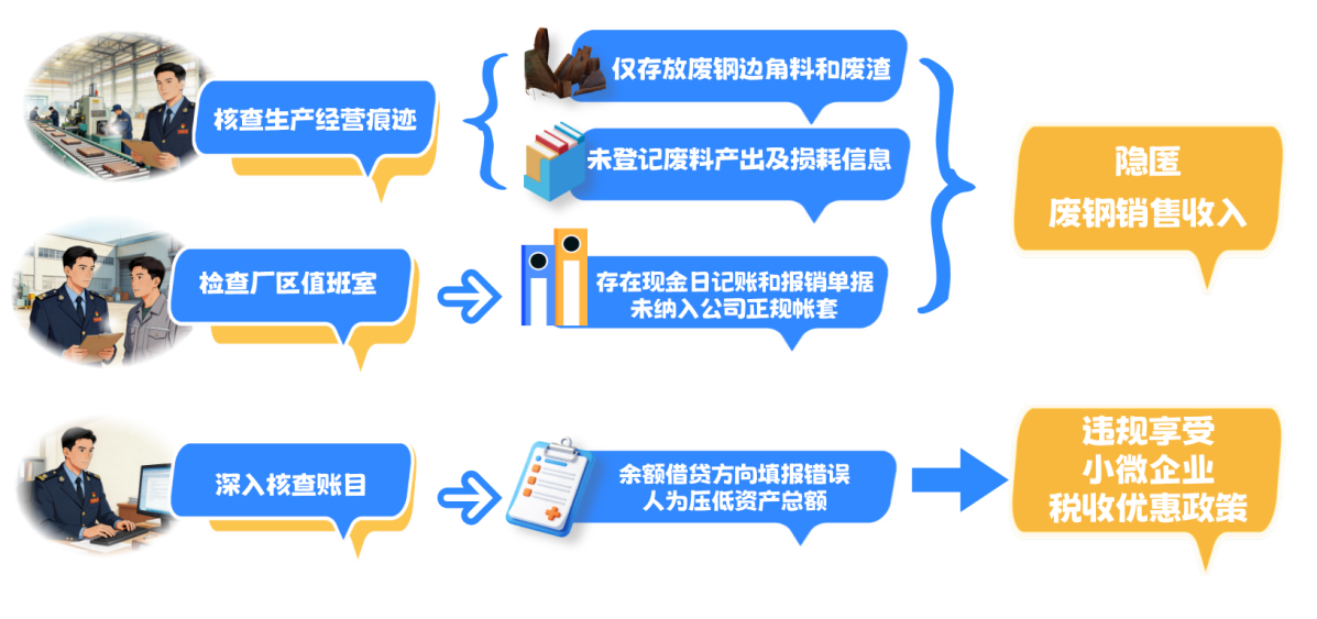 为全面核实相关风险,检查人员决定对其进行实地核查,并在实地核查中找到了关键破绽。厂区值班室内,检查人员发现了未纳入正规账套的现金日记账和报销单据。这些“内账”清晰记录了废钢产出及由个人现金回收的轨迹,直接戳穿了“无废料”的谎言。
