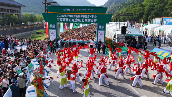乐跑九龙山,畅享大自然。4月26日上午9时,2026年陕西省路跑精英赛暨育才矿业宝鸡陈仓九龙山10公里精英赛在宝鸡市陈仓区九龙山景区准时鸣枪。5000名跑者奔涌而出,矫健身姿与赭红丹霞、苍翠山峦交相辉映,一场短距离路跑角逐在春日暖阳下火热启幕。