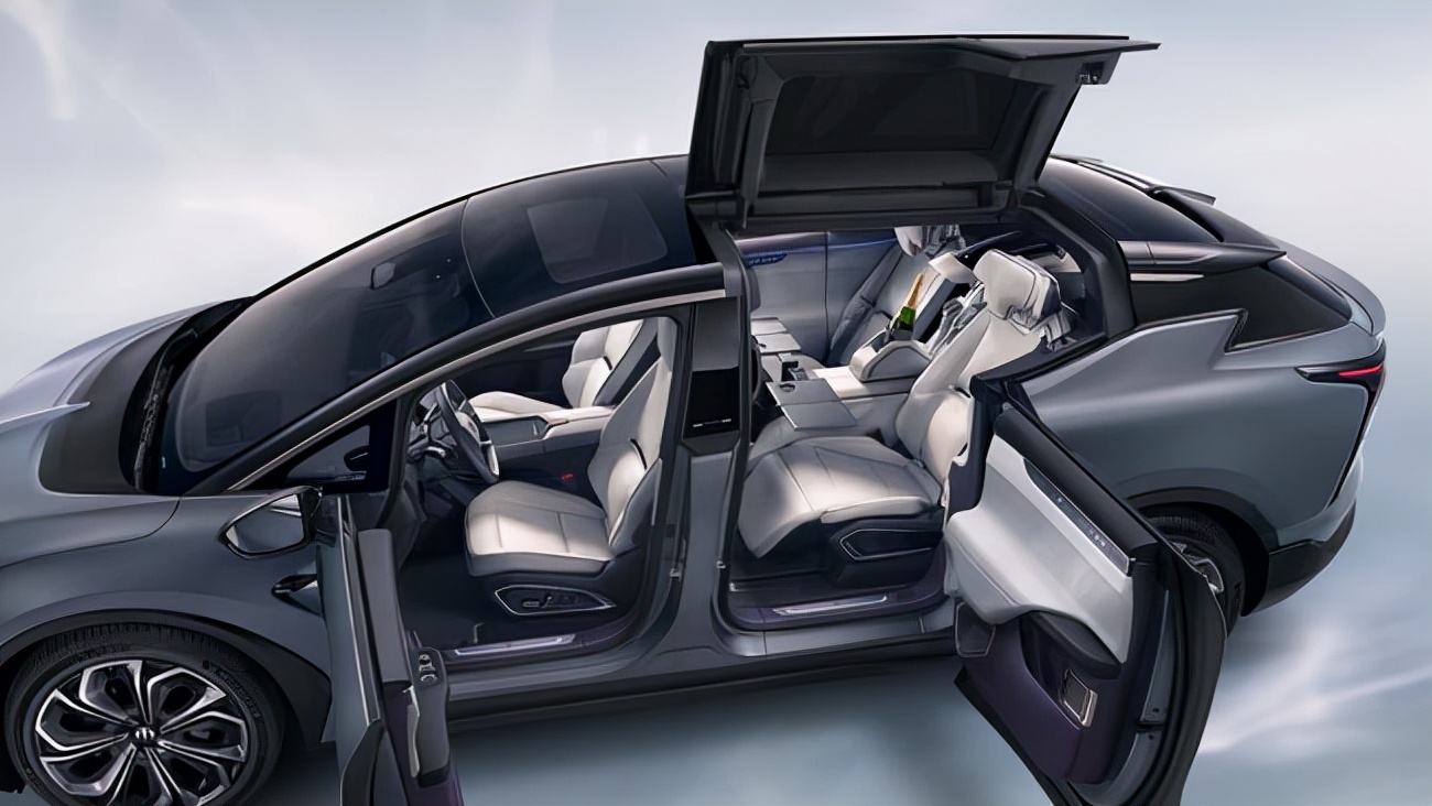 如果说售价是提升其品质,推举它“成功”的显著标志,那么它所呈现的未来感和科技感,则是这款车型的最大亮点。采用低趴式车身设计,车长为5200mm,轴距达到3150mm,尤其是采用了“展翼门”和对开门设计,在行业内是极其少见的,而这种六扇门设计,笔者只在劳斯莱斯等顶级豪华车型上见过。令人印象深刻。