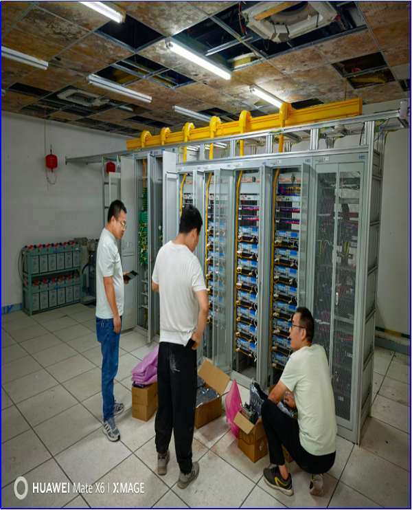 隐患排查更是一场“地毯式搜索”。“我们给每台设备都建了‘健康档案’,三轮巡检下来,光记录就写了满满三大本。”负责设备维护的同事翻出手机里的巡检照片,照片里他和同事蹲在地下机房,进行着容量侧的板卡扩容,手里拿着测温仪逐个检查设备温度。最惊险的一次,他们在最后一轮巡检时发现铁塔的远端设备电源配套存在容量过低容易导致跳闸的情况,“虽然当时还能正常工作,但赛事期间人流量大、设备负荷高,万一出问题就是大麻烦。”沣东公司网建立刻联系合作单位铁塔公司,在管委会的协助、协调下更换涉及区域的所有空开,从备件调配到施工完成,仅用了40分钟,“那时候脑子里只有一个念头:绝不能让任何一个小隐患留在开赛当天。”