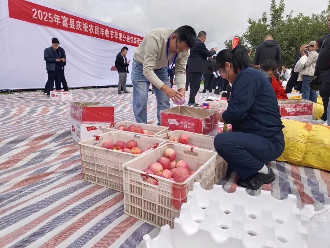 现场呐喊声此起彼伏。包苹果比赛率先开赛,包装材料轮番上阵,既要速度更要颜值;打箱子擂台同样紧张,胶带“唰唰”作响,一箱苹果便封箱成型。烟叶分级赛区则一片安静,选手们眼明手快,看色泽、比长度,手指翻飞间便完成烟叶分级。最热闹的拔河赛把气氛瞬间推向高潮,各乡镇代表队铆足劲头,麻绳中线左右摇摆,加油声回荡在稻浪之上。