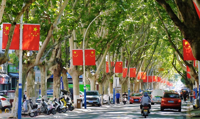 “每天上班经过这条街,看到整齐的国旗,心中不由自主地升起自豪感。”正在拍照的市民张女士表示,今年街头的国旗悬挂得格外美观,节日氛围浓厚。