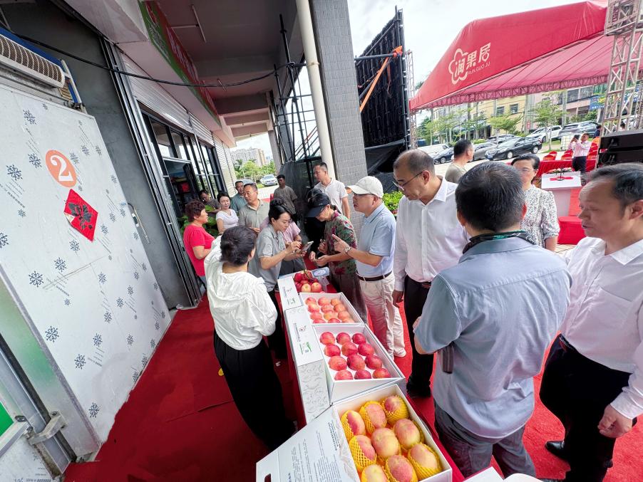 活动仪式上铜川市农业农村局局长刘随华和铜川市果业发展中心副主任付新刚分别授予铜川特色农产品(海口)展销中心“铜川农业对外招商联络站”“铜川苹果授权经营店”“铜川大樱桃授权经营店”牌匾,在现场嘉宾的共同见证下,铜川特色农产品海口展销中心揭牌运营,成为集产品展示、销售及品牌推广于一体的综合平台,助力海南消费者零距离体验铜川优质农产品的魅力。