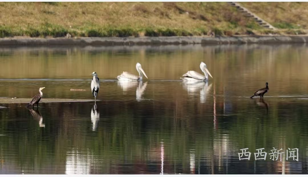 近年来,商洛丹江流域频频出现各类野生鸟类,除了卷羽鹈鹕,记者还看到鸬鹚、苍鹭、绿头鸭等出现在丹江河道。它们的光临,不仅为市民带来惊喜,也成为商洛生态环境持续向好的力证。(记者 张黎江 图/杨建锋)