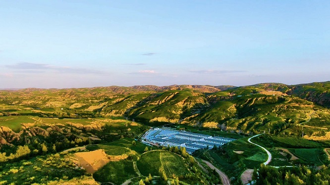 走进陕西德源府谷能源有限公司三道沟煤矿生态修复治理核心区域——庙沟门镇西尧沟村,技术人员正精细调控大棚温度,为樱桃树保暖促生长,确保来年开春鲜果早上市,保障村民增收。现在的西尧沟村,近30座种植大棚规整排布,5000多亩高标准农田丰产稳收,2万余亩绿化林地郁郁葱葱。作为全省国土空间生态修复典型案例,三道沟煤矿秉持科学修复理念,深耕“边坡复绿+植被重建+精细管护”一体化模式,稳步推进矿山生态治理,让昔日矿山成功披“绿装”、焕发新生,打造出生态修复与产业发展相融共生的示范样板。“我们始终将生态修复与生产经营同步谋划、同步推进,不仅高质量完成矿山生态修复任务,还打造出‘矿在绿中、绿绕矿行’的示范场景,让‘黑色产业’稳稳筑牢‘绿色底色’。”陕西德源府谷能源有限公司副总工程师杨永平说。