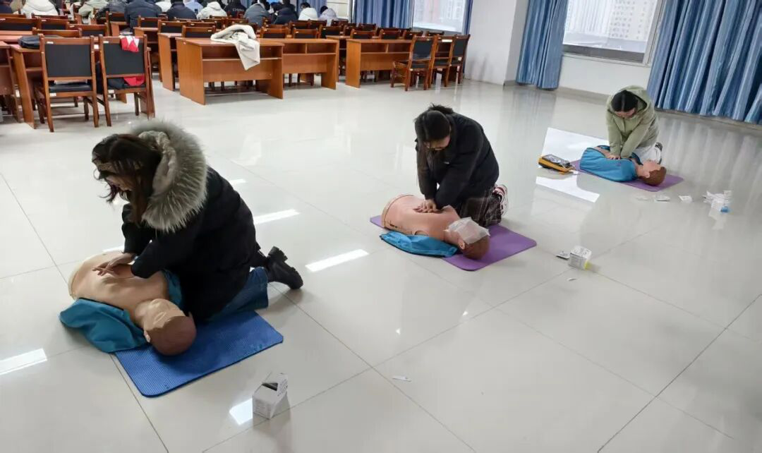 实操演练是本次培训的核心亮点。在红十字志愿者的组织指导下,参训学员分组利用专业模拟人和 AED 训练机展开实操练习。讲师围绕胸外按压的深度与频率、人工呼吸的气道开放技巧、AED 电极片粘贴位置、海姆立克急救法发力要点等关键细节逐一示范,对 “按压深度不足”“吹气不到位” 等常见问题现场纠正、反复指导,确保每位学员都能熟练掌握标准操作流程。培训现场学习氛围浓厚,学员们积极互动交流、反复实操打磨,力求将每一个急救动作做到精准规范。“以前只在书本上见过心肺复苏步骤,今天亲手实操才知道每个细节都关乎生命,经过老师纠正,终于找到了规范的发力方式。” 一位参训年轻医护人员感慨道。
