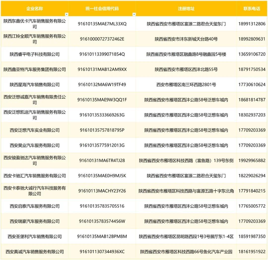 ▲燃油车补贴参与活动企业名单▲