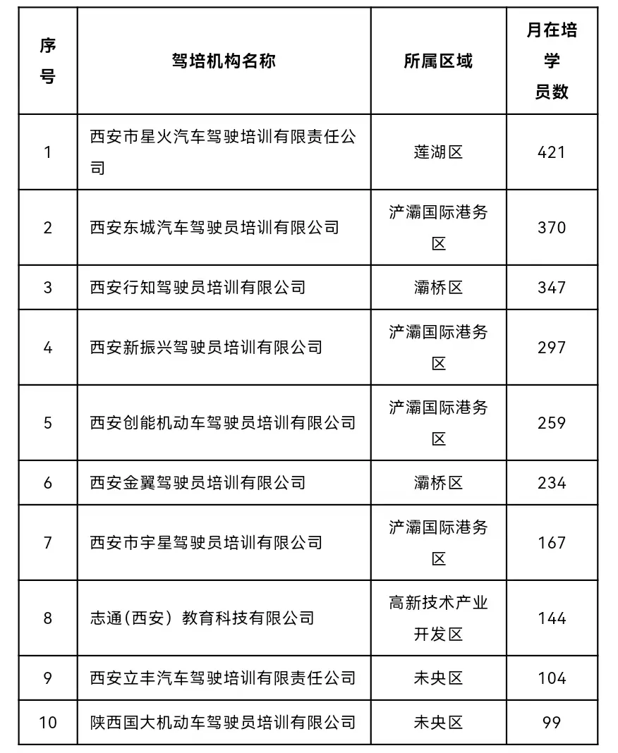 同时,长安区交通运输综合执法大队反馈,西安西一部机动车驾驶员培训有限公司等2026年3月投诉率前3名的驾培机构一并公示。