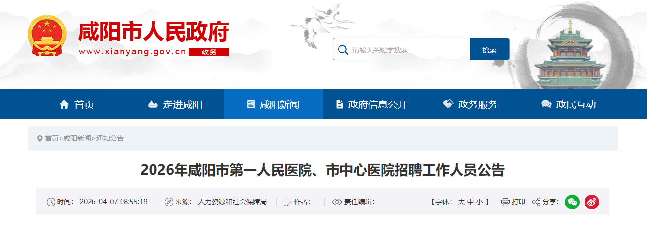 医药卫生类毕业生请注意!咸阳市级公立医院公开招聘