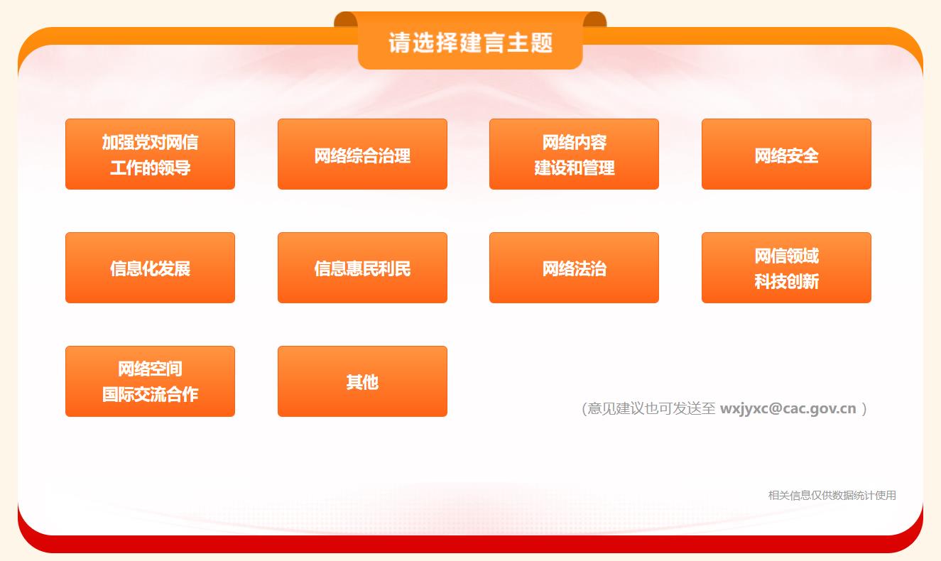 “十五五”时期是基本实现社会主义现代化夯实基础、全面发力的关键时期,是推动网信事业高质量发展、以网络强国建设新成效助力全面建设社会主义现代化国家的重要时期。为广泛凝聚网络强国建设共识力量,现开展“十五五”网信事业发展网络征求意见活动。热忱欢迎广大网民和社会各界提供宝贵意见建议,共同擘画“十五五”网信事业高质量发展新蓝图。