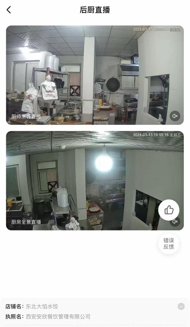 令人费解的是,记者在现场仔细排查后,并未发现任何“东北大馅水饺”的门店标识及经营痕迹。此外,记者在淘宝闪购平台看到,涉事门店的后厨直播画面中,两家外卖店的餐品均出自同一个后厨,由同一名厨师制作,而现场环境杂乱不堪,操作台污渍明显,食材摆放无序,卫生条件令人忧虑,与线上展示的整洁形象形成鲜明反差,与市民反映的情况一致。