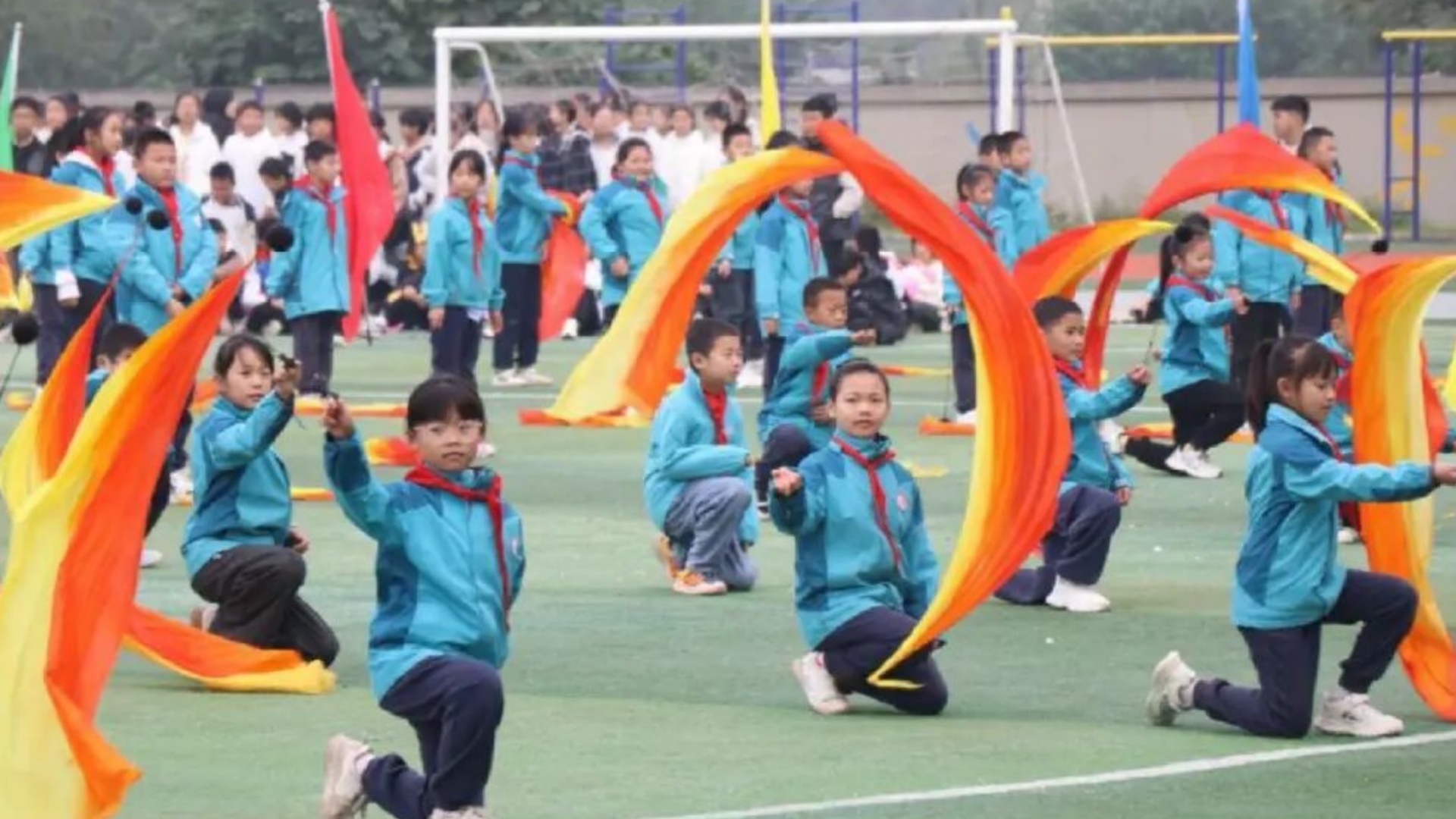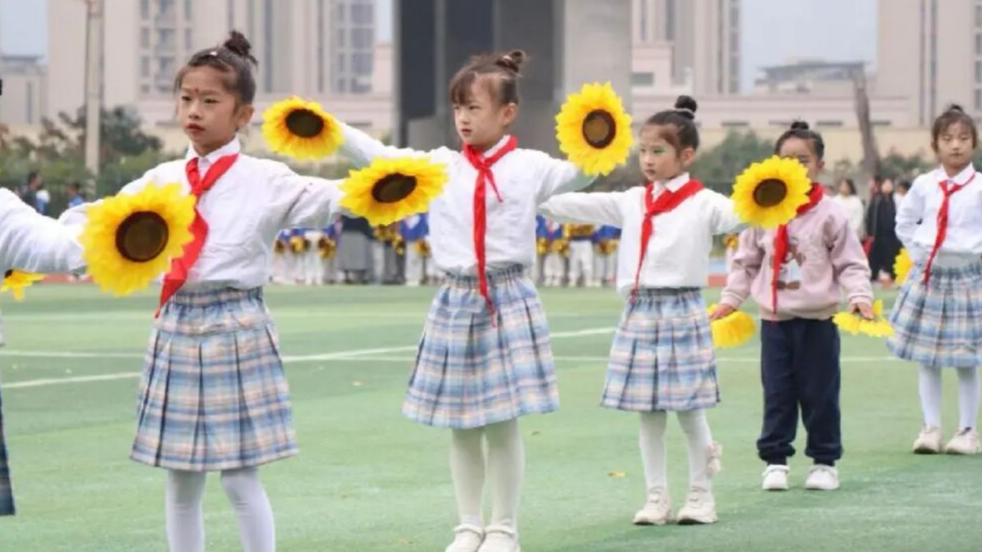 开幕式文艺展演环节堪称视觉盛宴。一年级《健身操》以灵动舞姿展现童真活力,二年级《我们是祖国的花朵》用甜美歌声传递爱国情怀,三年级《啦啦操》以动感节奏点燃全场热情。四年级《彩带健身操》如行云流水,五年级《美丽中国》以磅礴气势礼赞祖国,六年级《花环操》则以绚丽花环编织青春梦想。七年级《健康动起来》与八年级《强军战歌》更将展演推向高潮,赢得现场观众阵阵掌声。