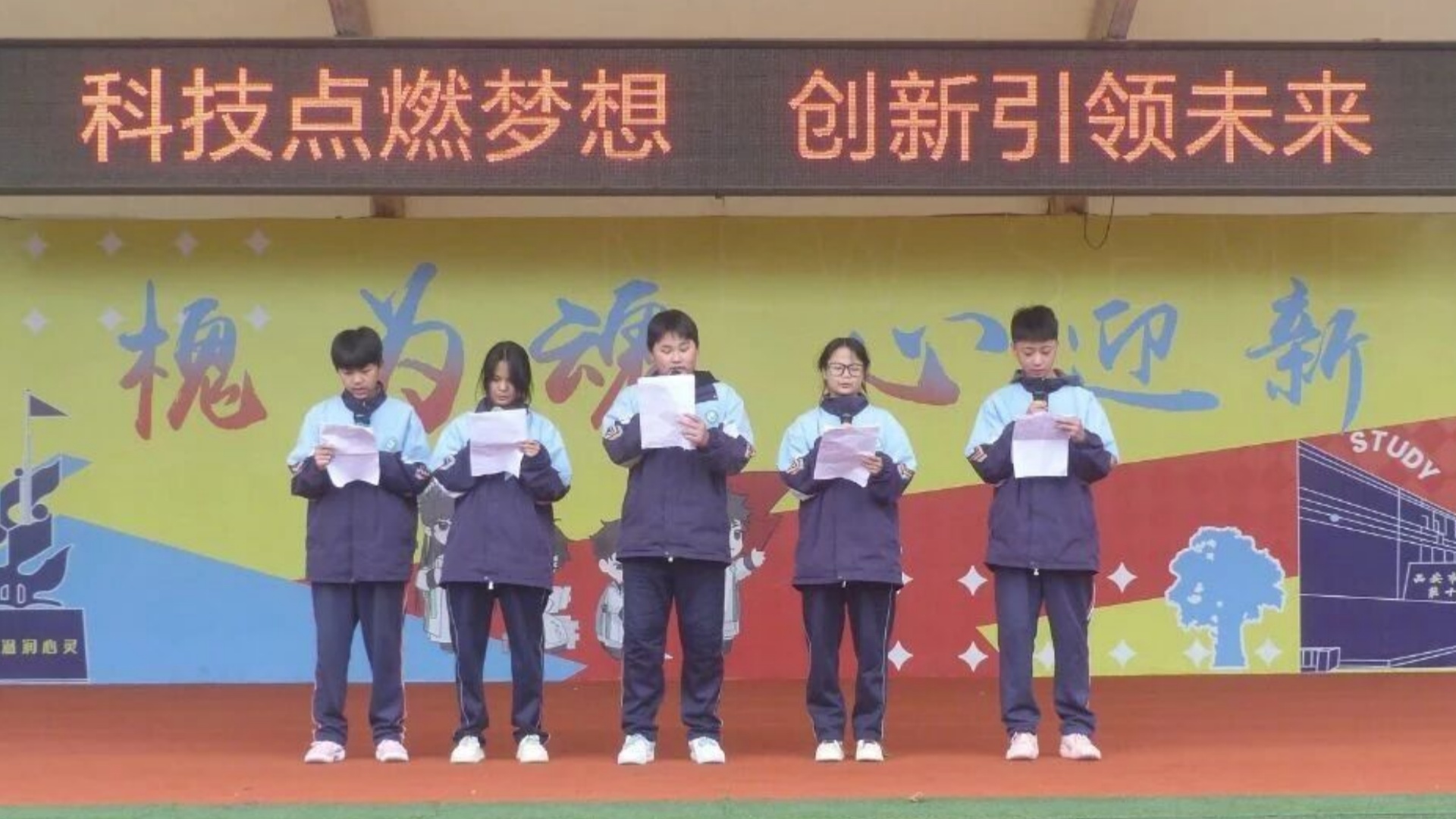 10月27日清晨,西安市第十九中学槐园内,晨光与槐香交织,师生共聚国旗下开启新一周的学习时光。庄严的升旗仪式后,八年级五班罗德阳、杨伍琪凡、吴鑫怡、杨伍琪菲、姬薛洋一五位同学以《科技点燃梦想,创新引领未来》为题发表演讲。
